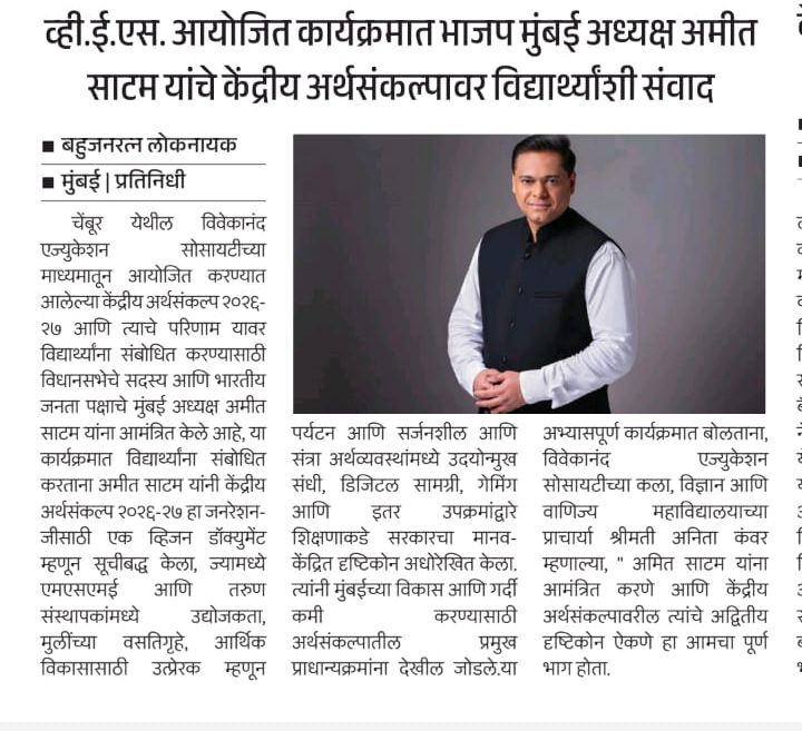 BJP Mumbai President Amit Satam interacts with students on the Union Budget at a Vivekanand Education Society-organized program”